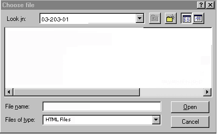 Instructions: The file folder, 03-203-01, opens but no case files appear in the folder. Because you are accessing your file folders from the Internet, Windows defaults to displaying only HTML files. Note the Files of type window showing HTML Files. To see all of the files in this folder, CLICK